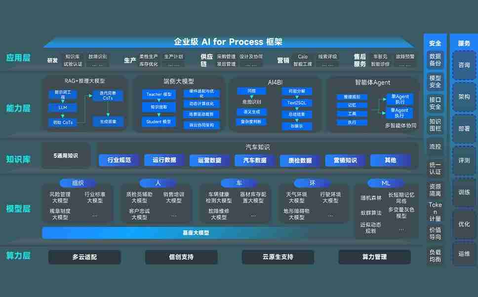 尊龙时凯问学智车解决方案是一套基于AI技术的汽车行业智能化系统,,,覆盖从底层算力到顶层AI应用的全栈方案。。。。方案由算力层、、模型层和应用层组成:算力层,,,,方案支持多种一体机配置,,,,具备云端灵活部署、、、、多云适配以及动态优化计算资源的能力;模型层,,,尊龙时凯问学平台版提供了企业级AI应用一站式构建与管理平台,,支持基于后训练强化技术的汽车企业专属模型的训练、、、、评测和运营;应用层,,尊龙时凯问学DeepSeek版提供包括超级员工、、、、智能招采、、、、智能营销、、、、智能客服、、AI for BI等一系列解决方案,,,,可助力汽车行业实现数字化转型,,,,让管理更智能、、、、响应更敏捷。。